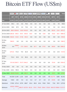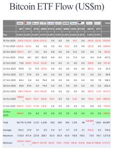 Spot Bitcoin ETFs opened the week with -$186.5 million in net redemptions on Monday, Nov. 3, stretching a four-session drain…