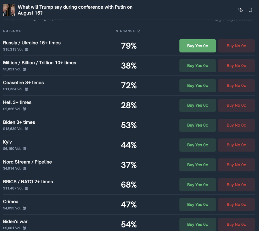 Polymarket traders bet on Trump shunning crypto during Putin meeting, go all in on Zelensky mention